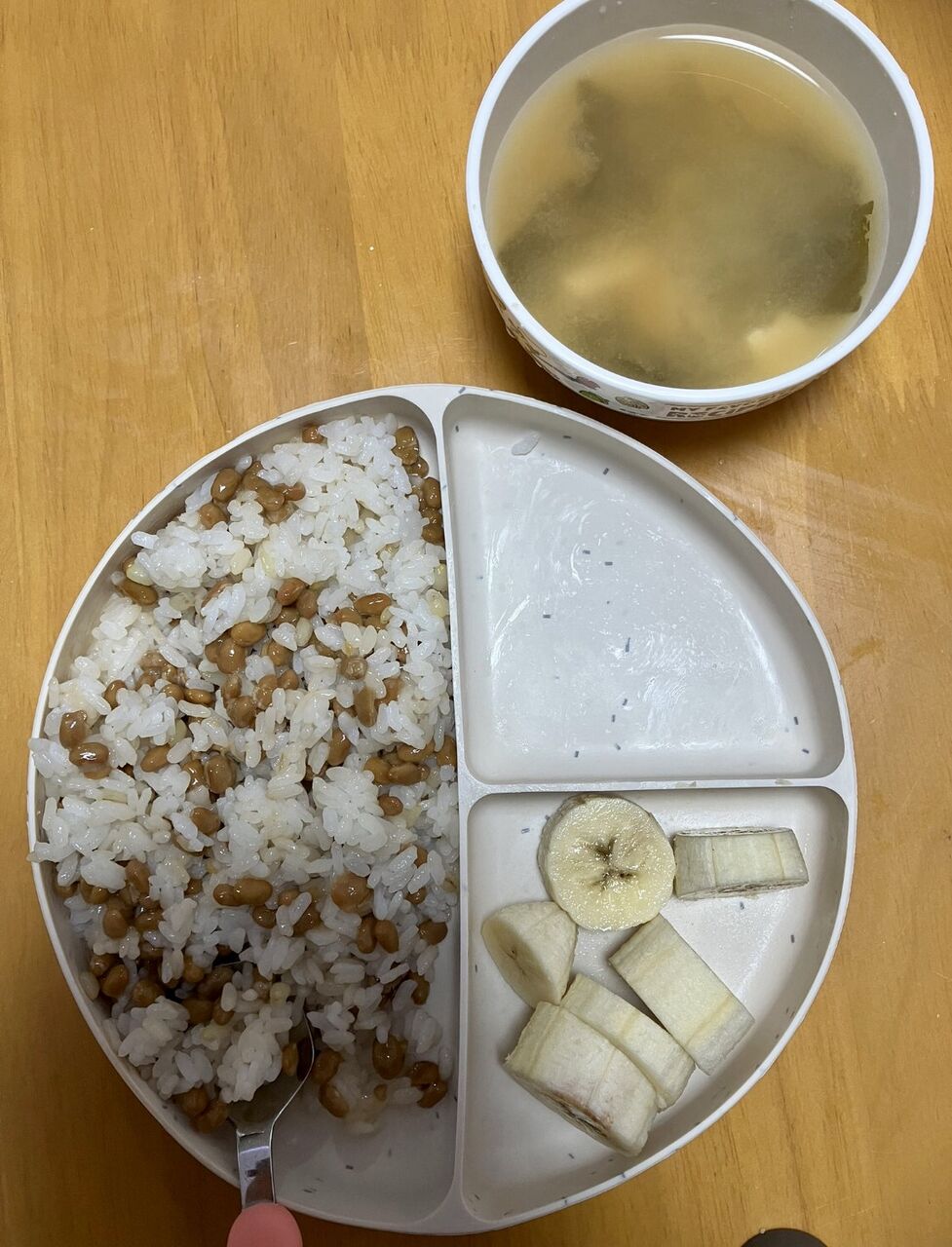 俺は米をたいて安い時に買う納豆、味噌汁は98円の野菜炒め用野菜を入れて作る