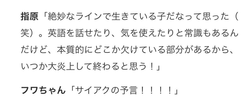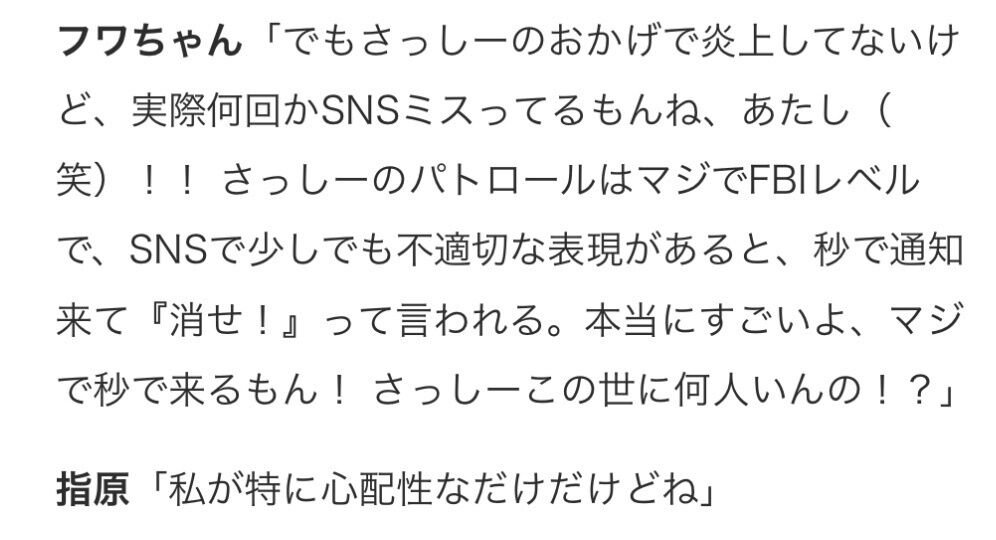 指原といえば、SNSでの不適切発言が原因で今月11日に芸能活動を休止したフワちゃんと親友であることで知られており、騒動後に指原のSNSにも批判の声が書き込まれるなどしていた。前回の投稿から1週間ぶりとなる本投稿では、コメント欄は閉じられている。