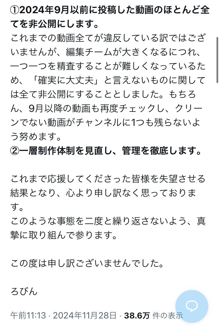 ろびんは前も何かやらかして炎上してたな