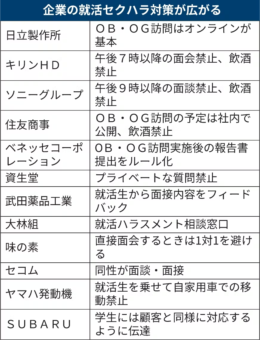 就活セクハラの根絶を訴えるとともに大学を管轄する文部科学省に対して声明文を提出した。厚労省の防止指針では就活生の保護は義務付けておらず、社員に対するのと同様に就職活動をする学生たちへのセクハラ、パワハラも禁止し、相談窓口の設置も義務付けるよう求めている。大学に対しても就活生へのハラスメントの実態調査と相談窓口の設置を求めた。…