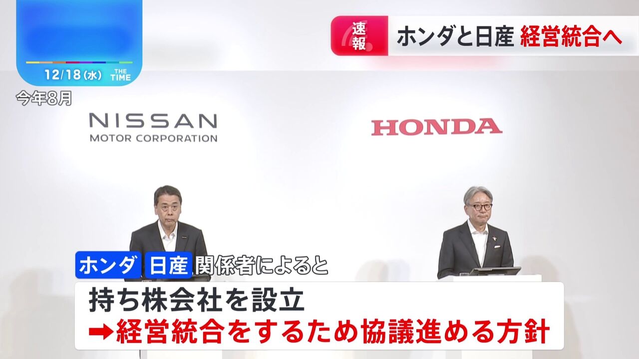 関係者によりますと、ホンダと日産自動車が傘下に入る持ち株会社を設立して経営統合をするため協議を進める方針だということです。